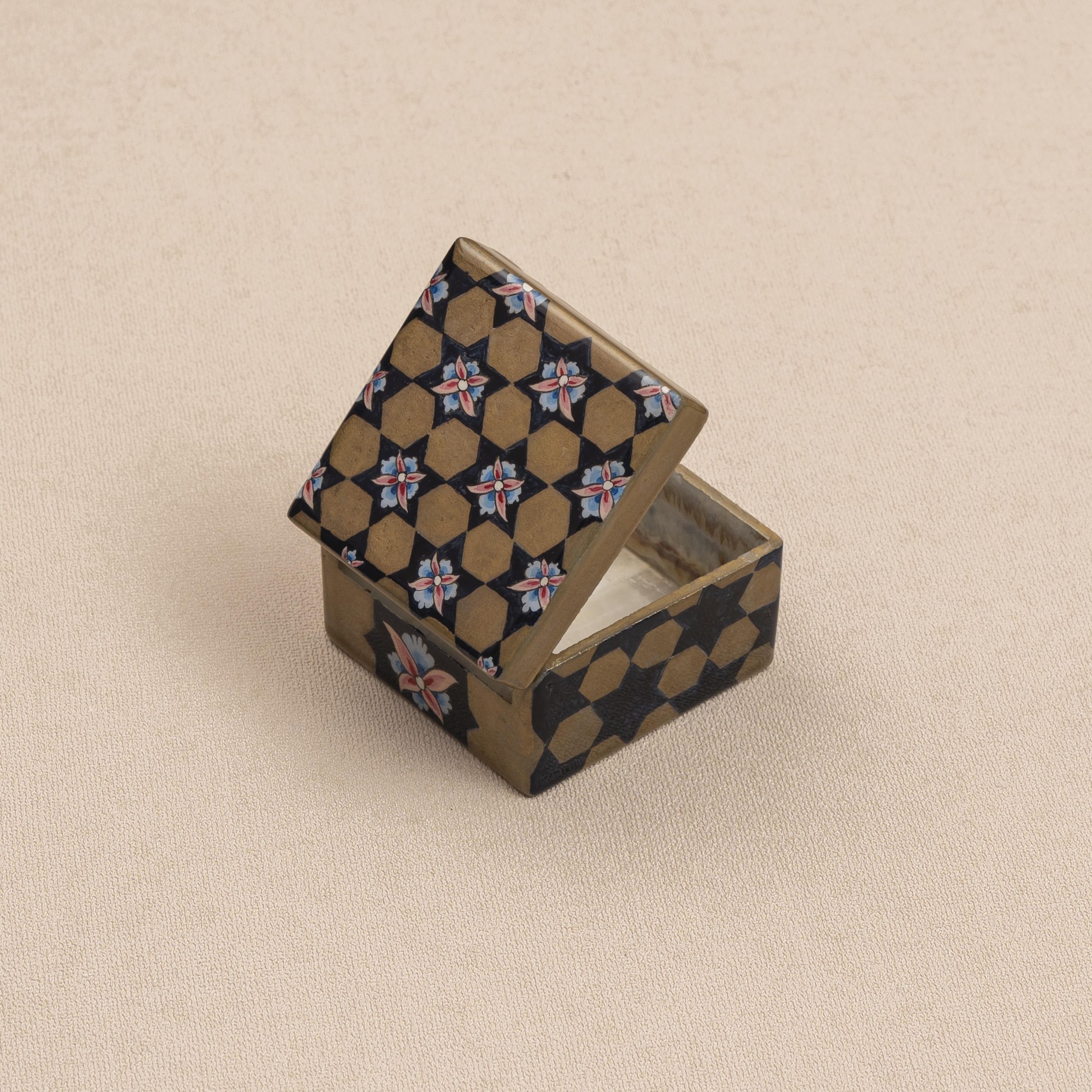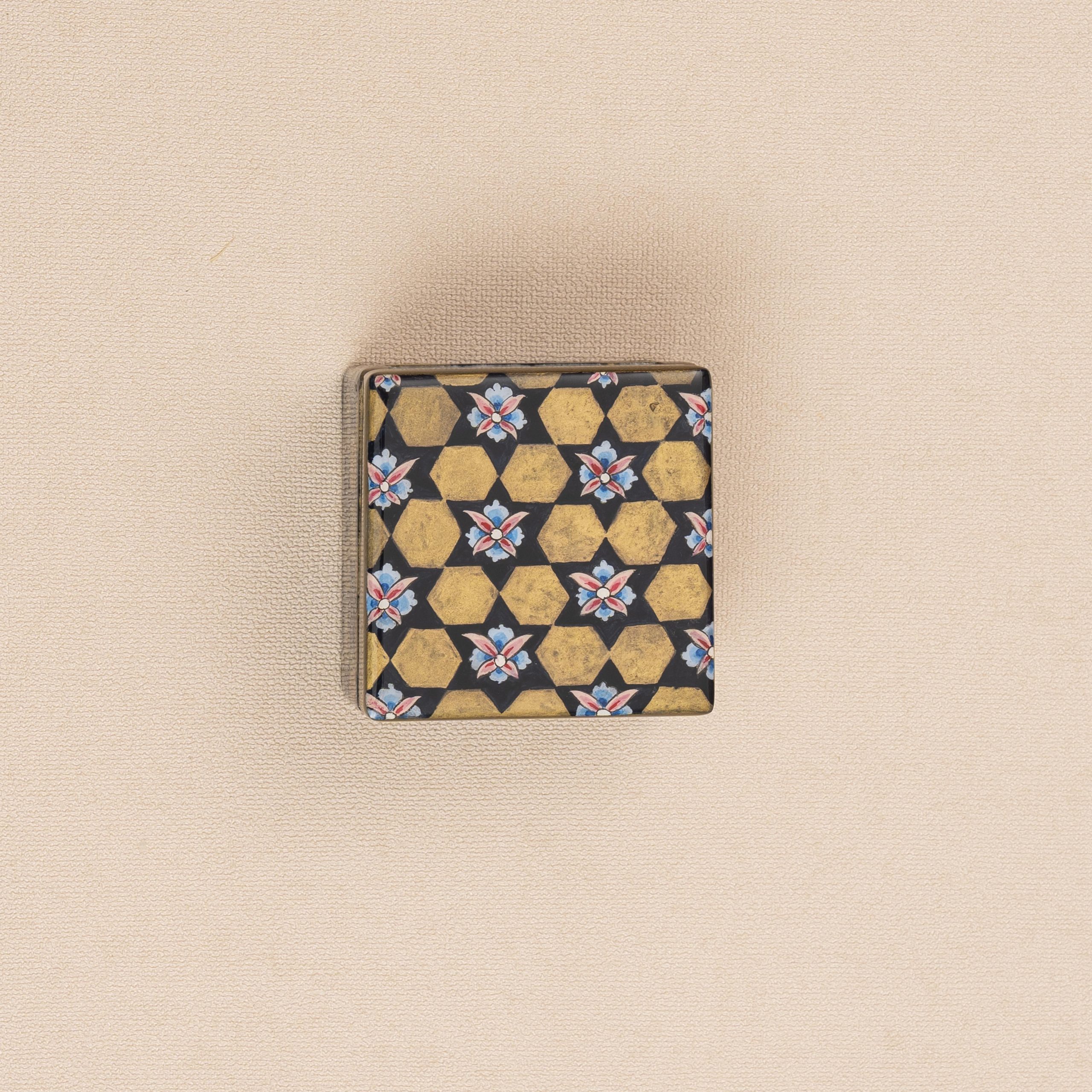 ترکیب تذهیب و گل و مرغ با این ظرافت در جعبه ۶*۶ یکی از شاهکارهای مجموعه مرمریس است هنرمند با این ظرافت روی جعبه کوچک ترکیب تذهیب با گل و مرغ را با رنگ های چشم نوازی انجام داده است