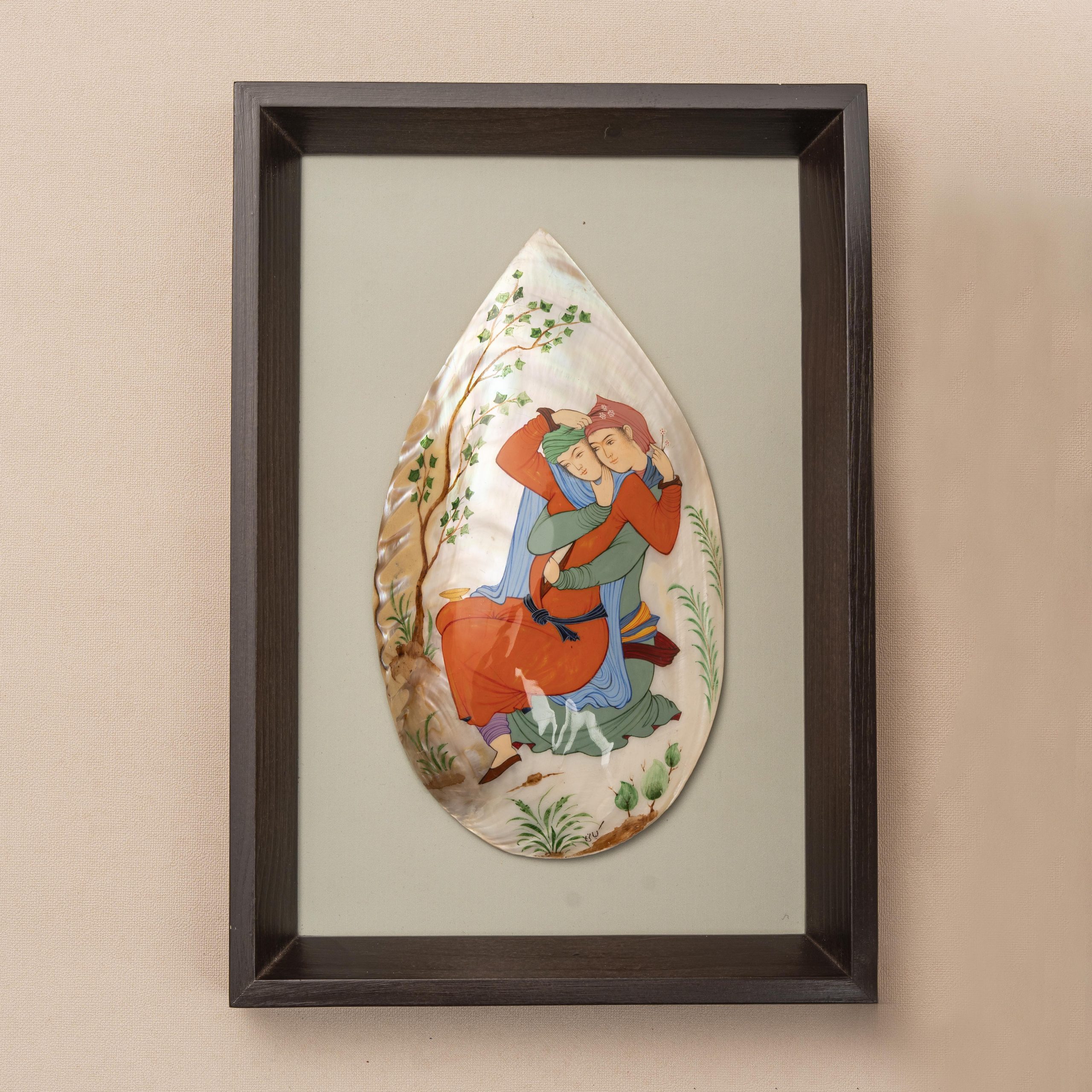 تابلوی فوق که نظارهگر آن هستید یکی از کالکشن صورت مرمریس است که روی صدف اجرا شده است. کاری جدید و زیبا که هنرمند مینیاتور را روی صدف اجرا کرده است و این شاهکار هنری را خلق کرده است.